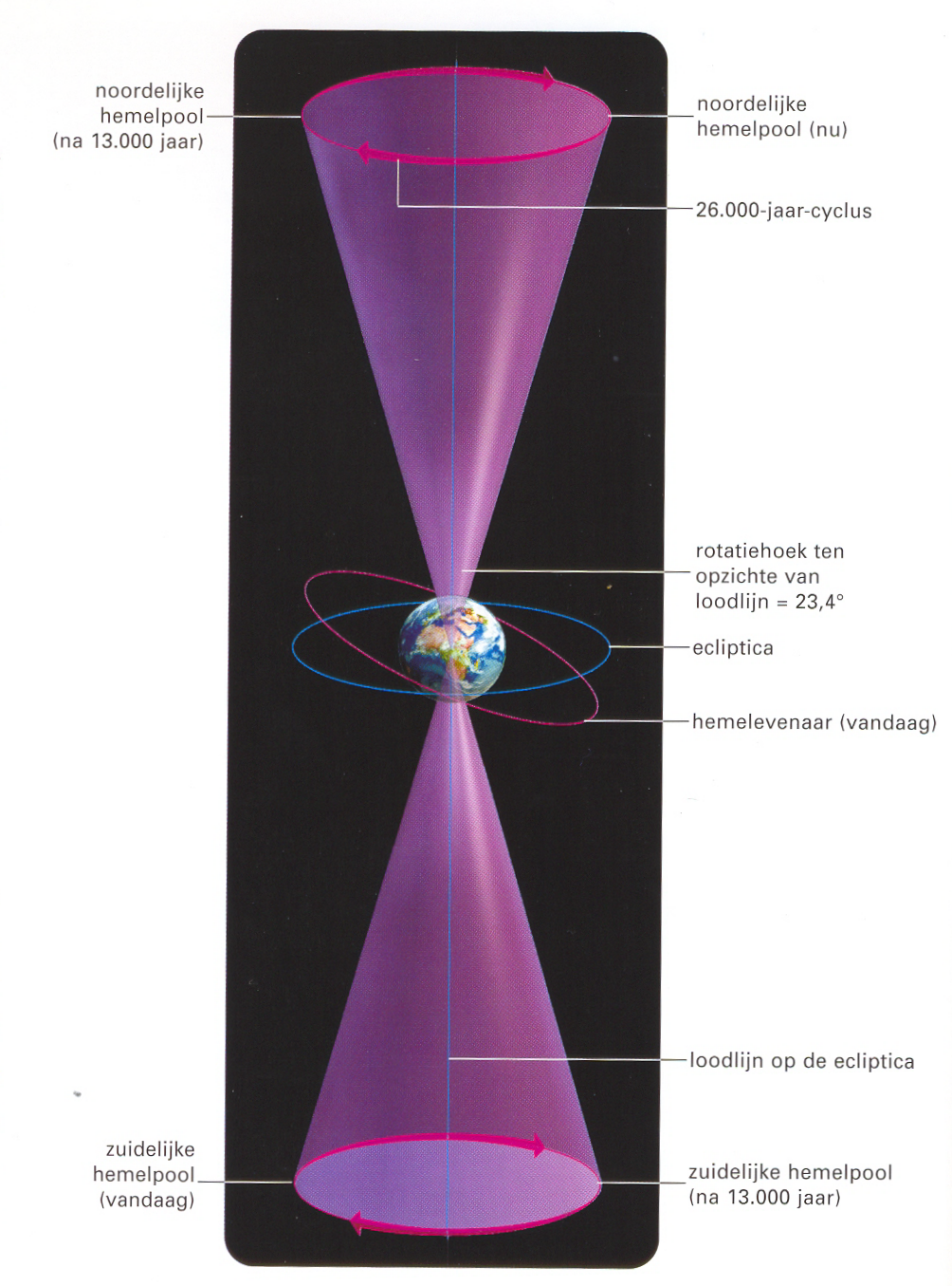 Eén rondje van het bovenste cirkeltje in figuur twee duurt ruwweg 26.000 jaar.