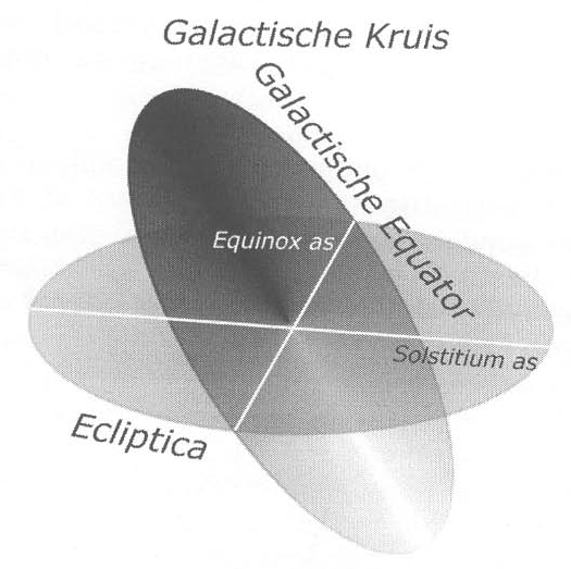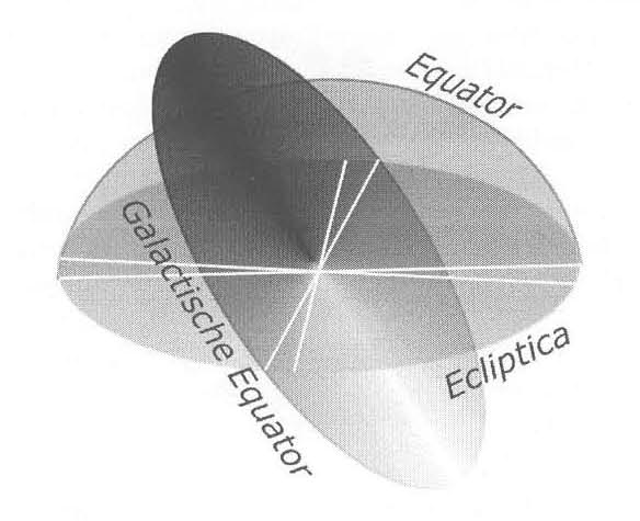 Maakte de Aardebaan een hoek van 23,5 graden met de Zonnebaan ( de hoek tussen de equator en de ecliptica) ; de ecliptica maakt een baan van 60 graden met de Galactische equator.
