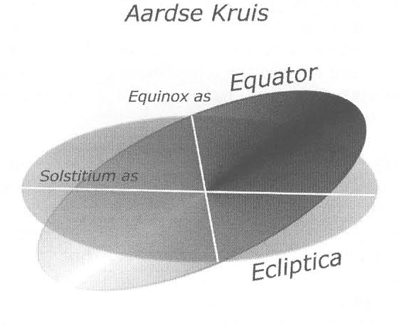 We kunnen door de punten A-C en door de punten B-D een lijn trekken waardoor er een kruis ontstaat wat het Aardse kruis wordt genoemd.