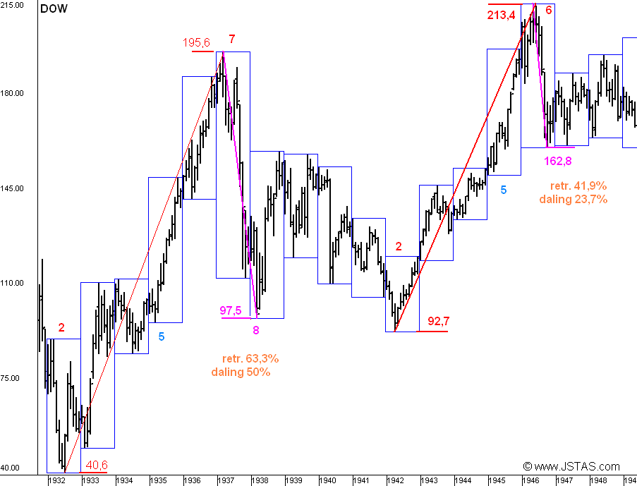 stijging plaats vindt tot in het jaar 1946 op een koerswaarde van 213,4
