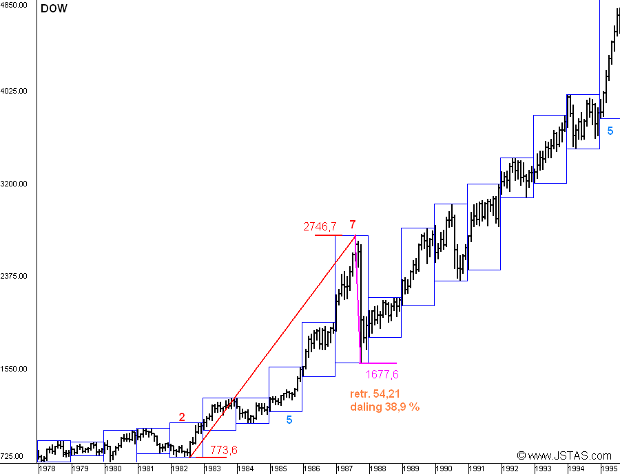een stijging naar de waarde 2746,7 in het jaar 1987 waarna in relatief korte