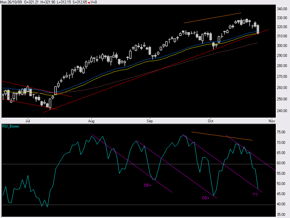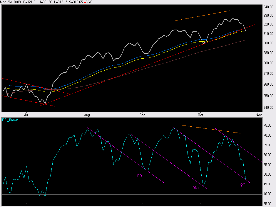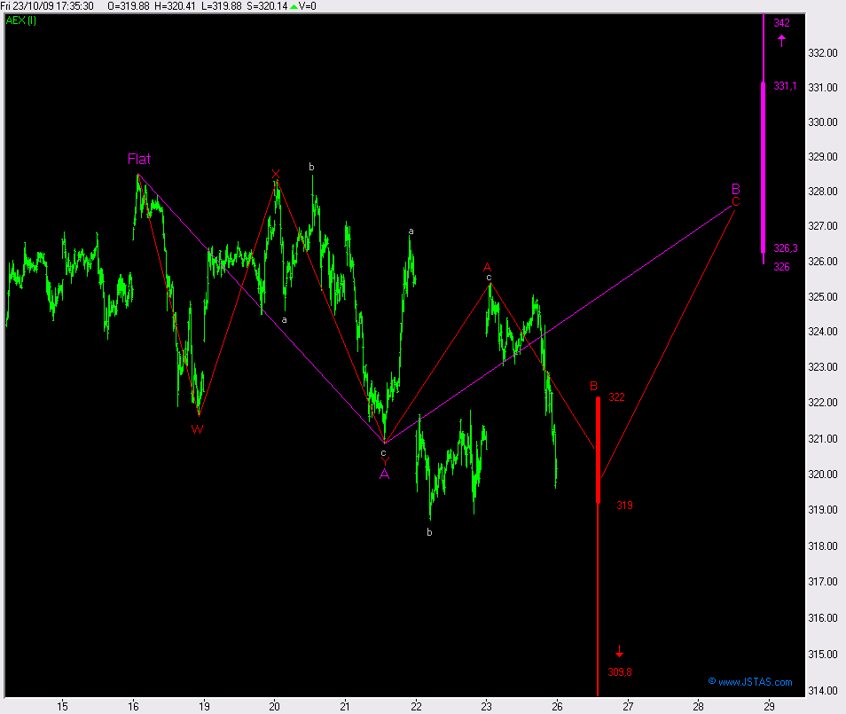 Wat betreft de EW telling lijkt het alsof de W-X-Y golfbeweging vanaf begin Maart geplaatst is ( zie grafiek 4 in de weekend-update van 27-September-2009)).