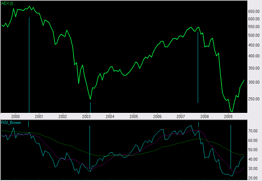 U ziet dan verderop in 2009 een duidelijke shift in de RSI van negatief naar positief gebied, dus diegene die de reis van 24x naar 30x heeft gemist is een ****** ;), de signalen waren meer dan duidelijk aanwezig.