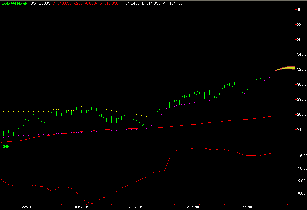 Tsja, ik kan uren/dagen/weken doorgaa; maar ik wil in dit geval slechts even wijzen op de dijk van een divergentie die ontstond in maart-2009, iets wat op een andere wijze zichtbaar was in de maand grafiek is in deze grafiek meer dan duidelijk aanwezig.