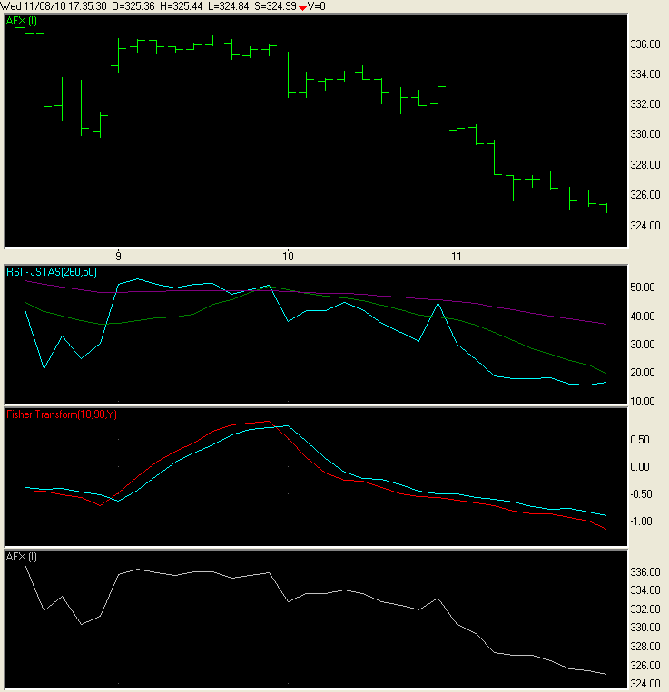 Je kan het ook korter op de bal spelen, neem bijvoorbeeld eens de uur grafiek en plaats er eens de Fisher Transform onder, de ta-script code heb ik u daarvoor gegeven op ta-script.com.
