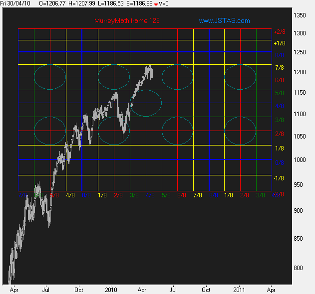 Hieronder als voorbeeld even de S&P500 via de MurreyMath grafiek. | |