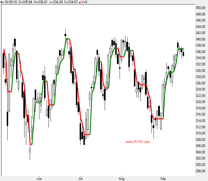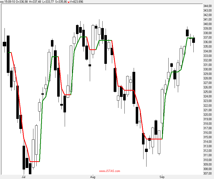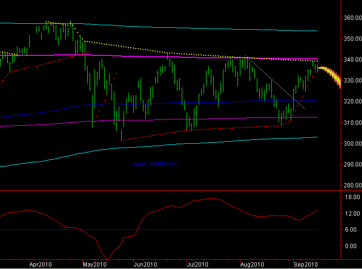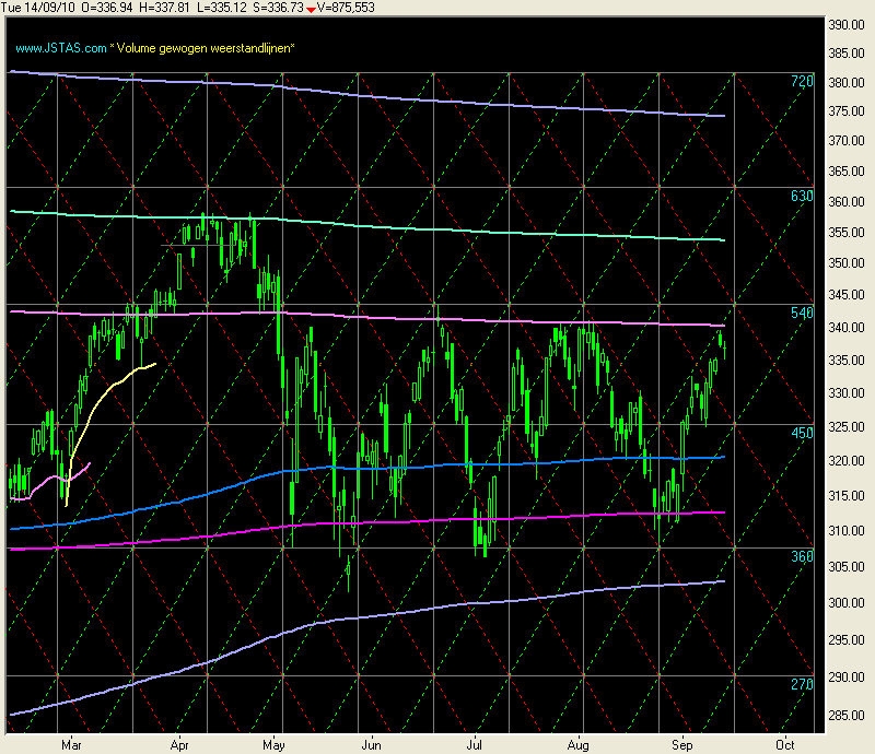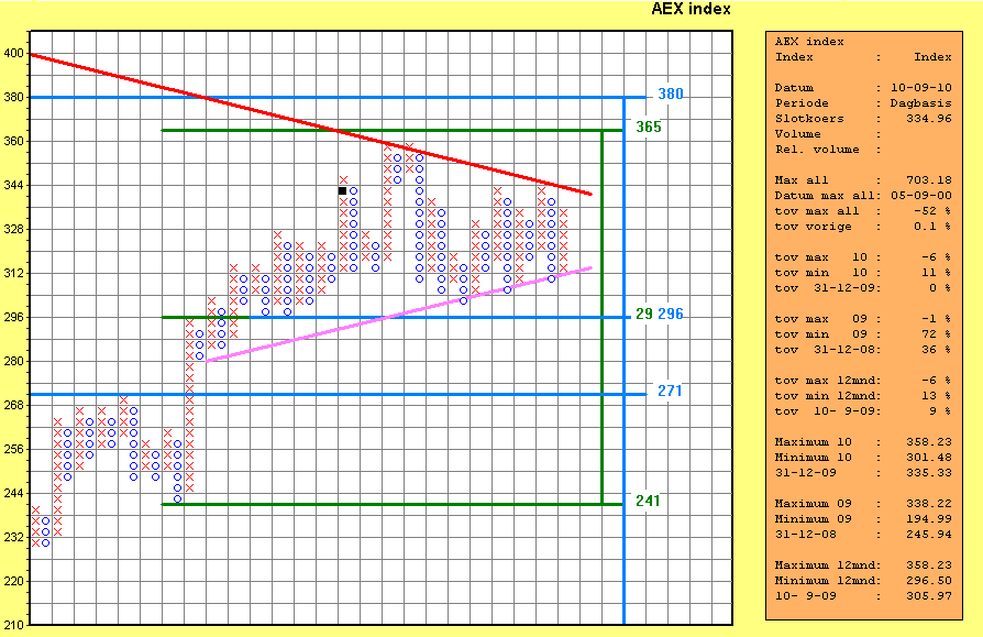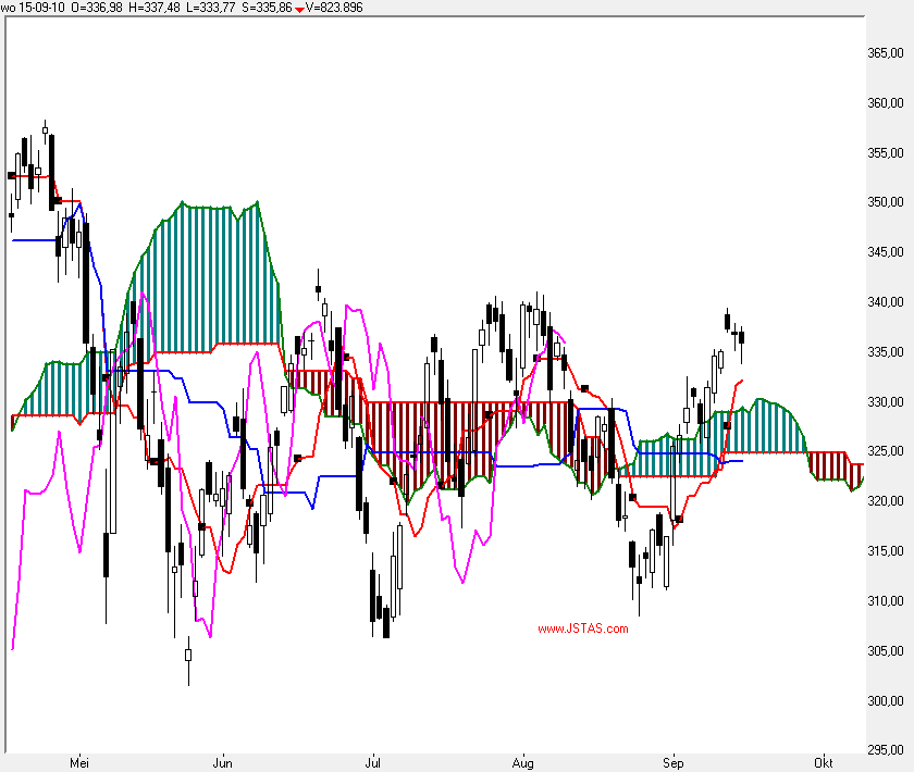 Op 27-08 liet ik u hieronder eenzelfde grafiek zien, de verwachting was toen omhoog, 320 en/of hoger.