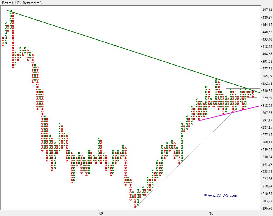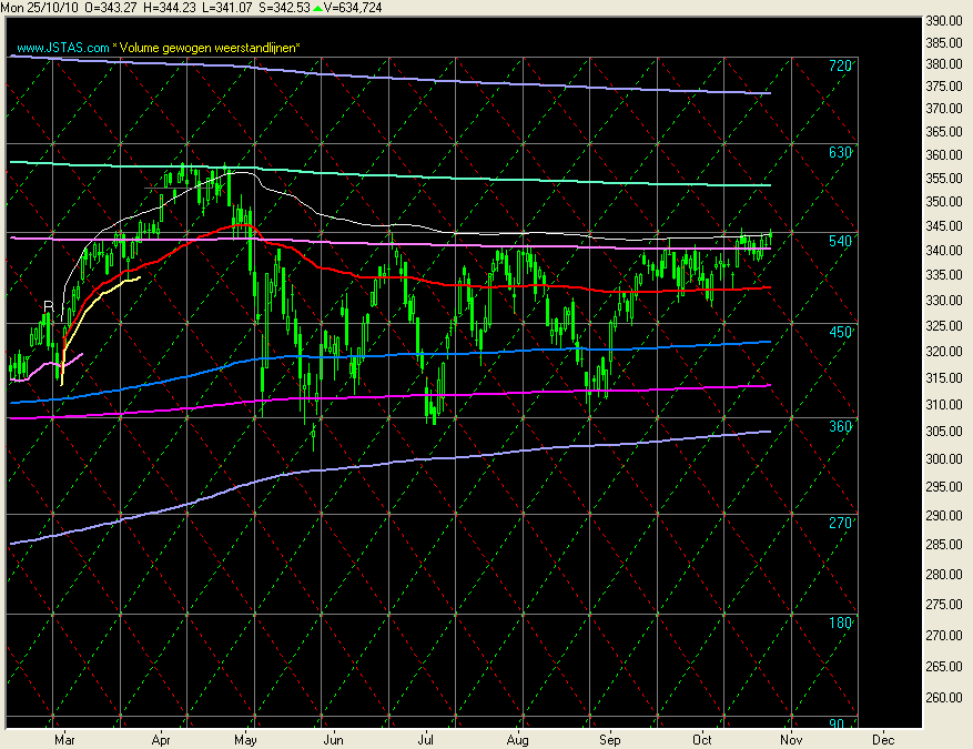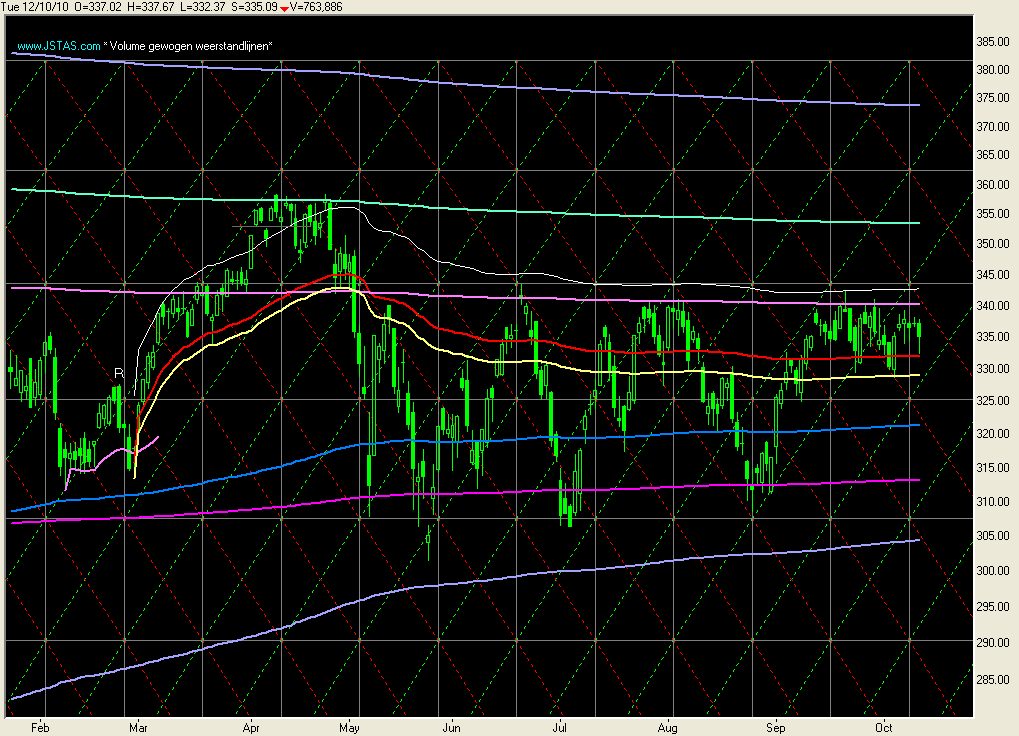 U ziet in grafiek 2 hoe mooi de Koers-low van vandaag steun vond in het gebied 329-330 wat ik gisteren al vermeldde.
