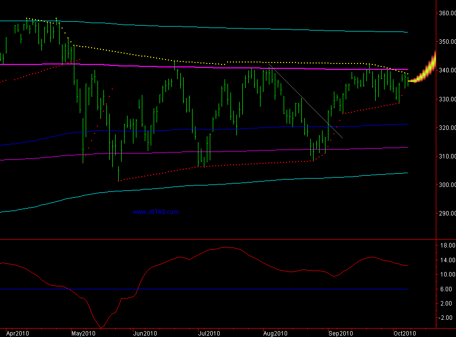 De handel in de avond uren wist niet echt hoger te sluiten, de overnight grafiek staat op dit moment van schrijven op 336.