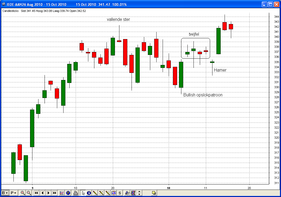 op de beurs; wie de daggrafiek via de candlestick weergave bekijkt