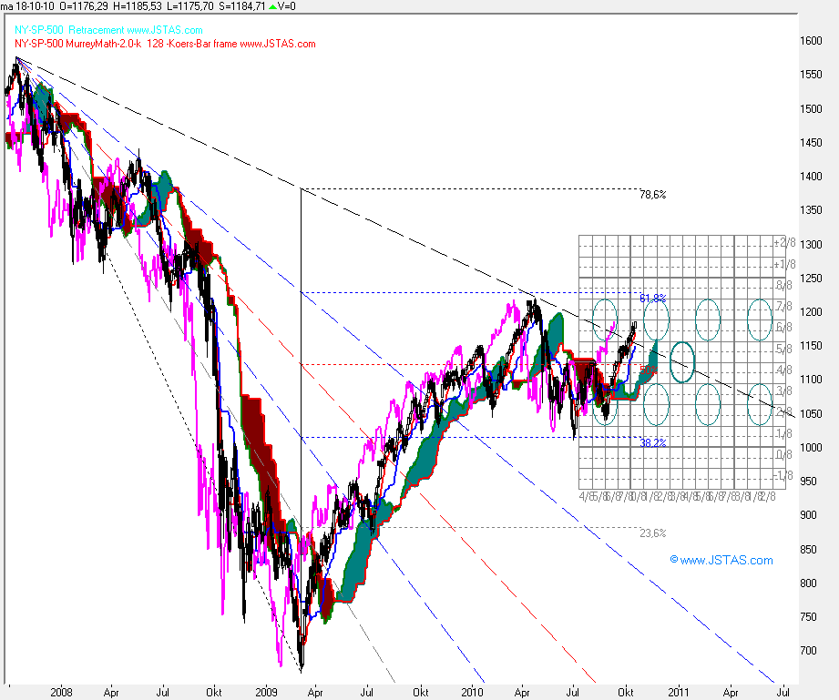 Laten we nu deze samengestelde cyclus, de compositie van diverse cycli, eens even in de koersgrafiek zelf zetten.