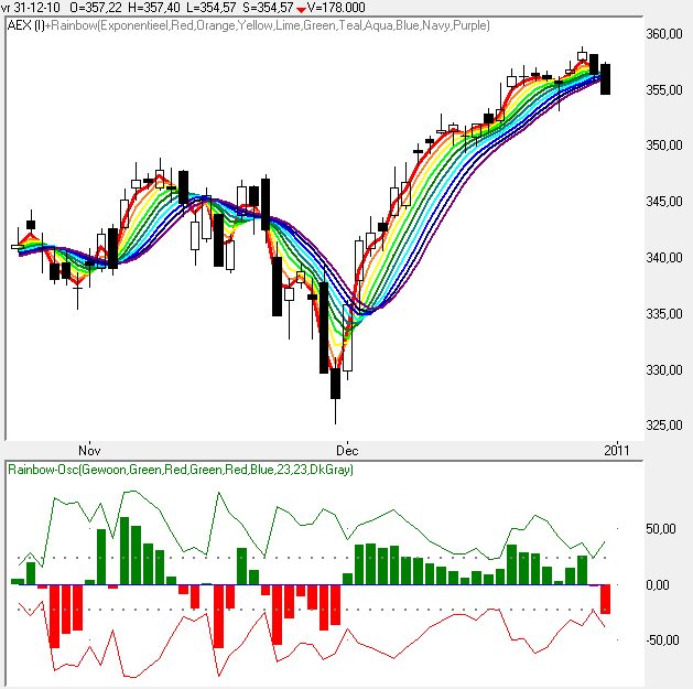 Dit samen met de andere indicatoren geeft een beeld over een mogelijke weg die de koers gaat volgen.