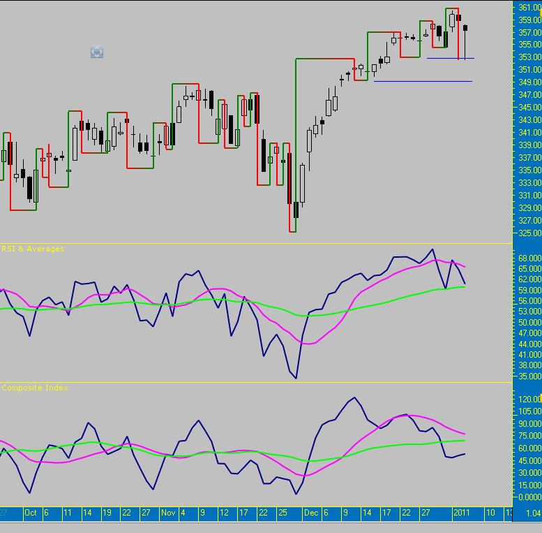 In grafiek 4 in de update van 02-01-2011 hieronder ziet u bij de uitslag van de A_RSI indicator al een uitroepteken staan.