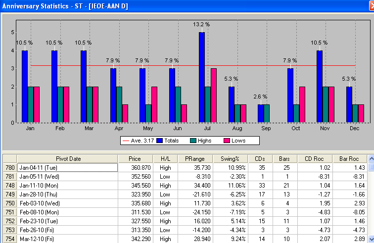 We kunnen natuurlijk de computer per maand even laten berekenen hoeveel down swings en hoeveel up swings er waren in een bepaalde maand.
