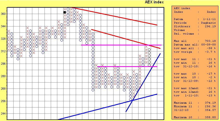 In grafiek 3 de Point&Figure grafiek van gisteren .. maakt niks uit ...