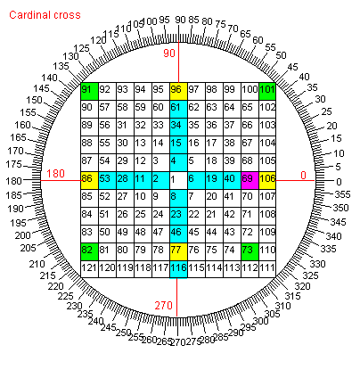 volgens het Square of Nine zoals boven weergegeven. |